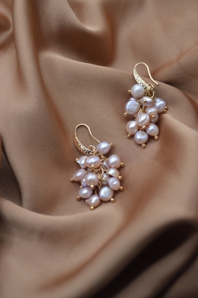 Grape Earrings Natural Water Pearl (Pink)