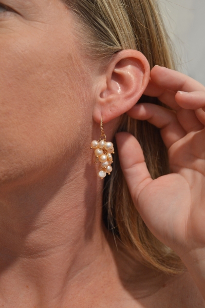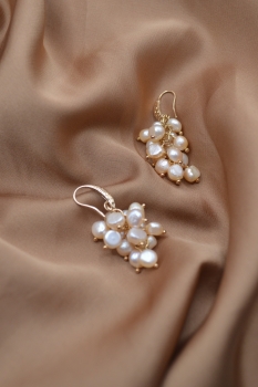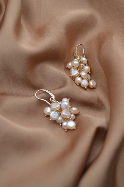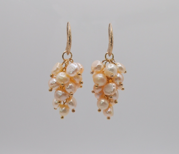 Grape Earrings Natural Water Pearl (Orange)